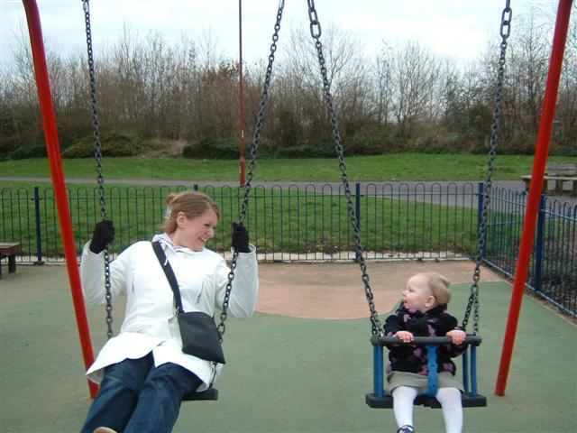 Molly and Mummy swinging away. (28/03/2005)